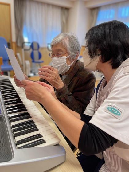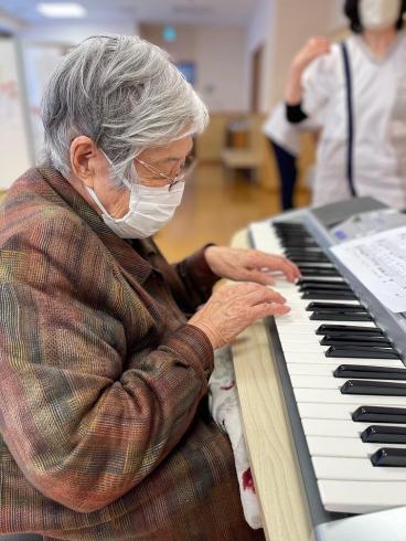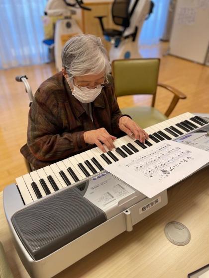 「ずいぶん昔だからねぇ」と思い出しながら、最後には懐かしい昭和の曲(機能訓練指導員はタイトルはわからなかったそうです)を片手で弾き、音を一つ一つ確認しながら丁寧に演奏されていたそうです。