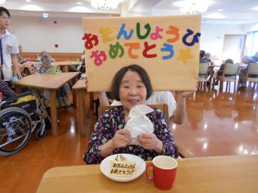 毎月1日は、施設でその月の生まれの方を祝う誕生日会を開催しております。