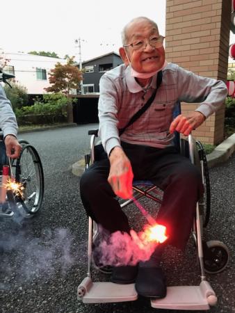 感染対策等で8月に実現できなかった花火をお客様に楽しんで頂くべく、ちょっと季節外れではありますが秋の花火大会を実施しました。何日かに分けて、夕方より各階ごとに施設駐車場にて少しではありますが楽しんで頂きました。