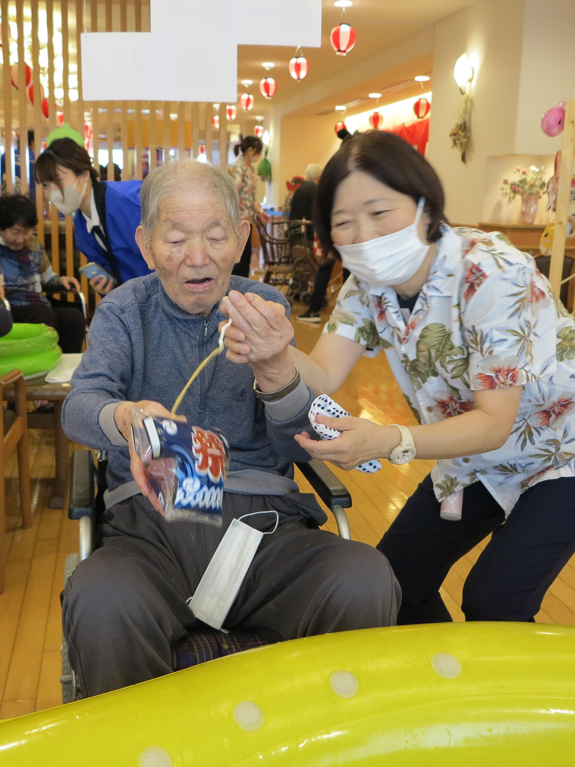 屋内で行われた催し物は、お祭りの屋台を模したゲームを楽しんで頂きました。