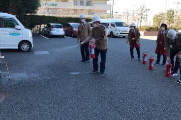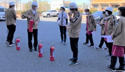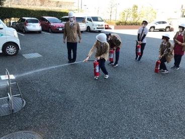 外では消火訓練も行います