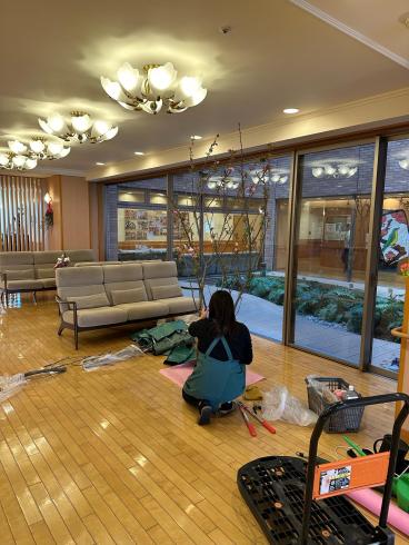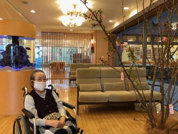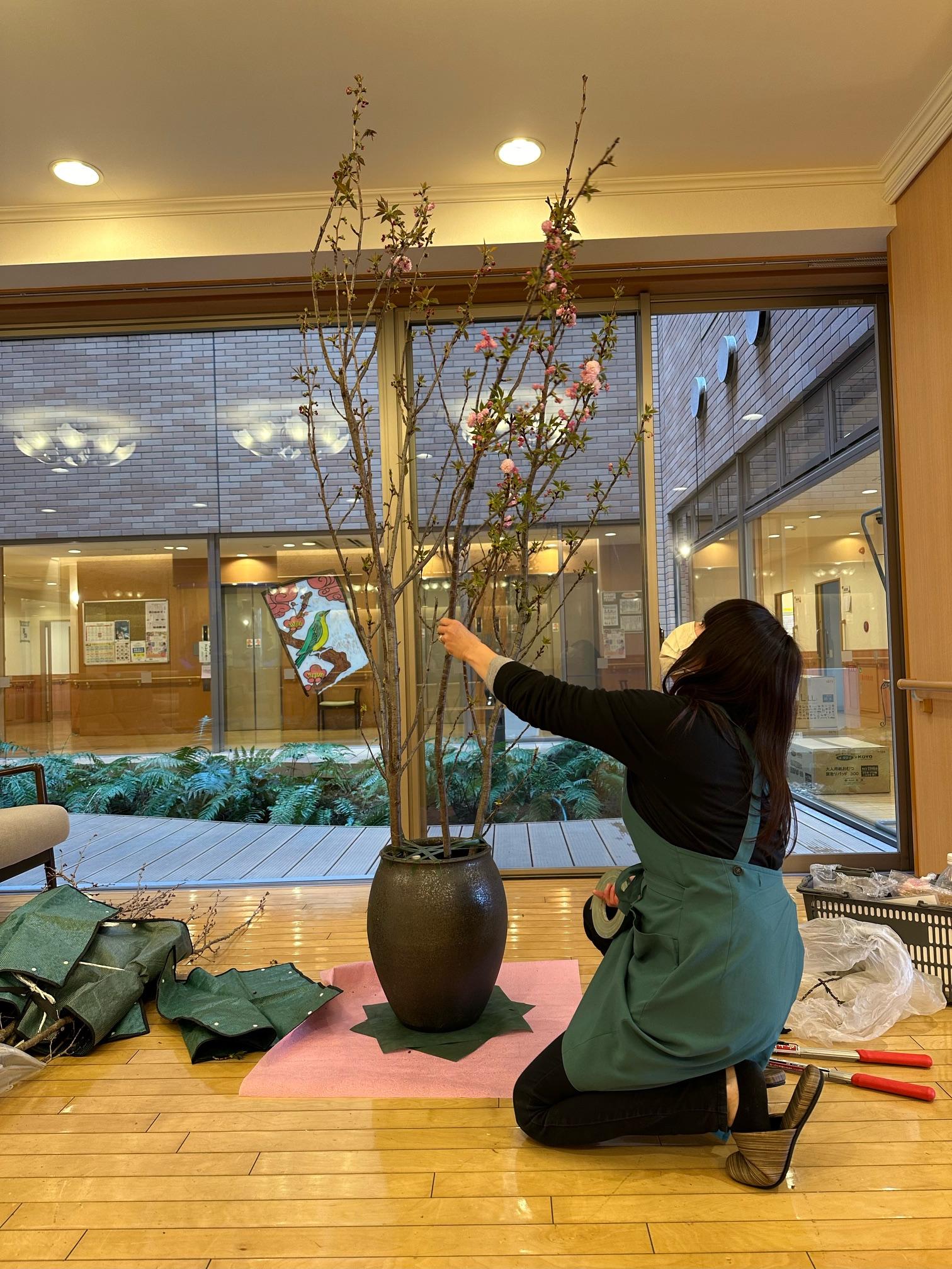 ツクイ・サンシャイン町田西館では、本日(22日)エントランスに八重桜が装花され、一足早く春らしい装いとなりました!
