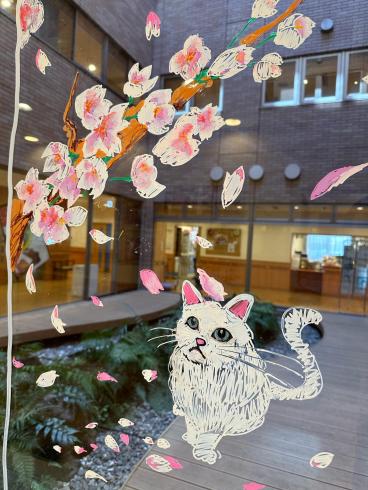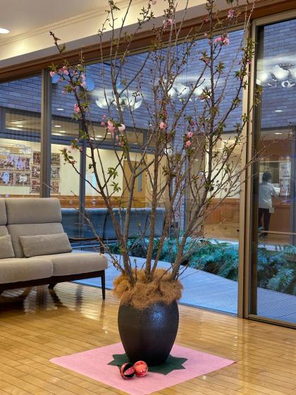 見事な桜が咲きました。桜を飾るとエントランスが一気に華やかに。春がやって来ました。