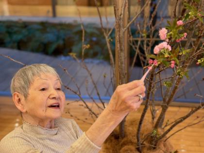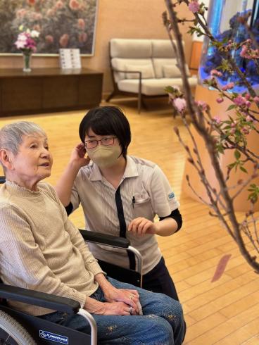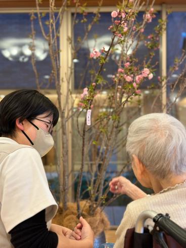 桜が飾られたことをお話しすると「見て見たいわ!」と大変喜ばれ、来てくださったお客様がいらっしゃいました。