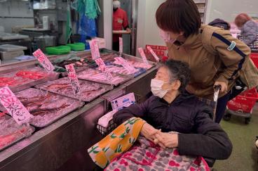 『捌くならこの魚がいいかしら?』楽しそうにスタッフと会話をされています。