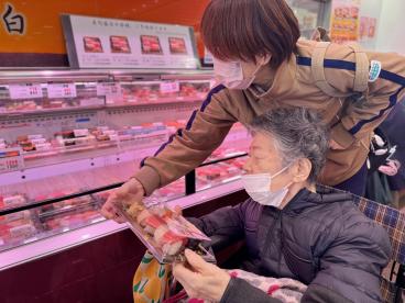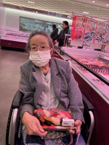 今日は皆様、ここで昼食用に、お好きなお寿司やお弁当をご自分で選んで買う予定です。