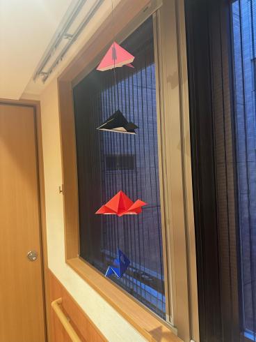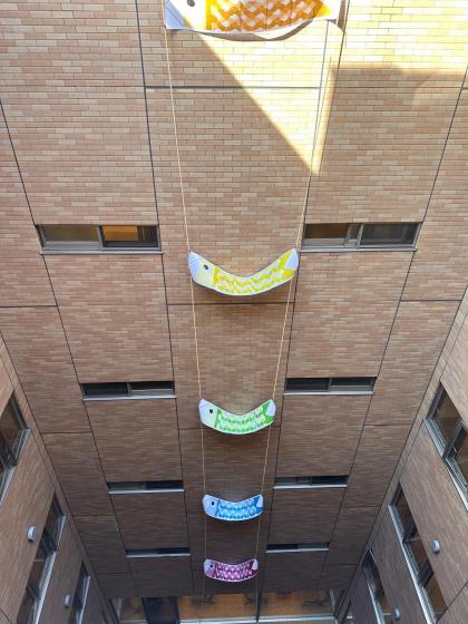 スタッフの手作り鯉のぼりが、5日の子供の日の前後数日限定で、中庭の外壁にお目見えしました!