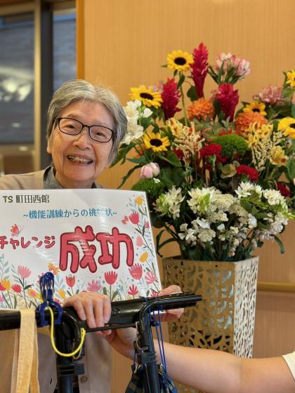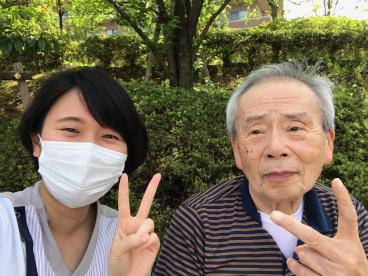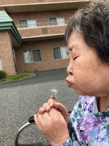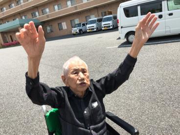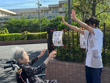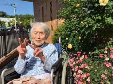 散歩の中で歩行訓練や、日常動作維持の体操、お花を見たり空気を吸って