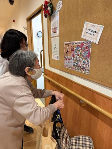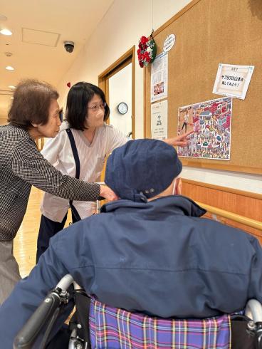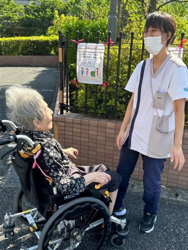 お客様の状態を見ながら施設内のお散歩にお連れしたりしています。