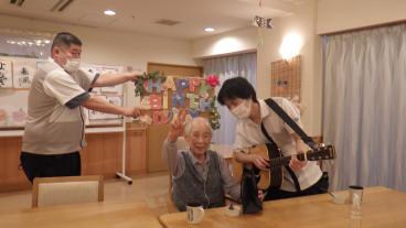 スタッフがギターの演奏でお祝いをする華やかな5階さんです!