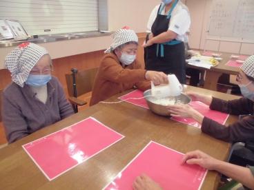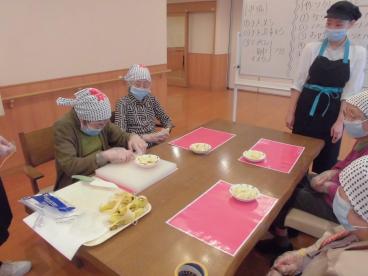色々なフルーツを切る作業や、ホイップクリームを混ぜる作業などいくつかの工程を、厨房職員と一緒に行っていきます。