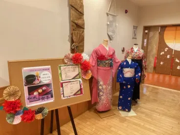 食堂も和風喫茶仕様に変わり、スタッフもいつものユニフォームから着物に衣装チェンジ。