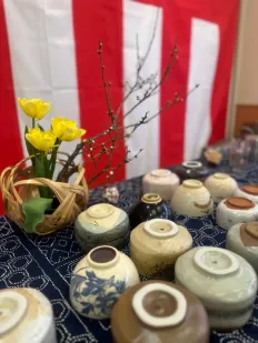 たくさんのお茶碗からお好きなものをお選びいただき、お茶を点てます。