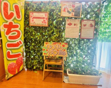 いちごを召し上がってお腹いっぱいになった後は、いちご狩りオリジナルフォトスポットで記念撮影。