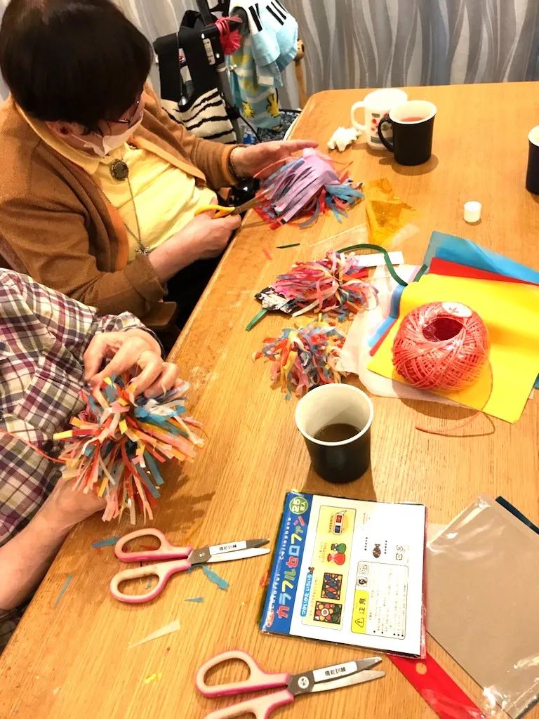手指を動かすことでの脳トレや時期に応じた作品づくりで季節感を味わってもらうことを目的に、機能訓練では定期的に[手作業]を行っています。