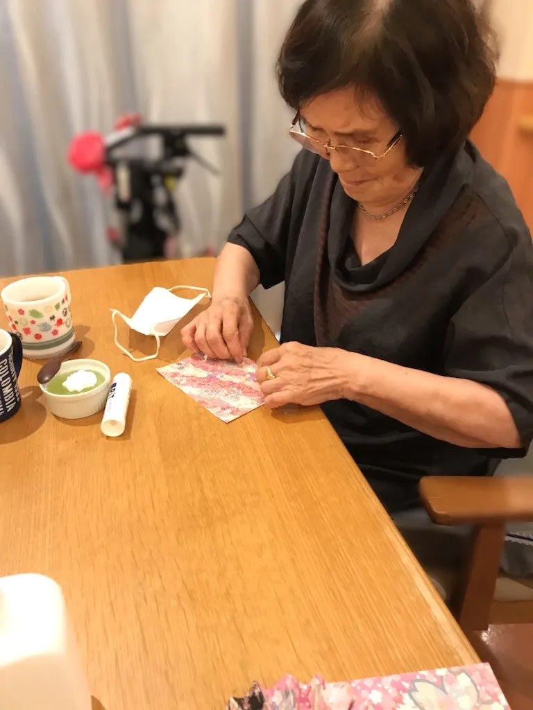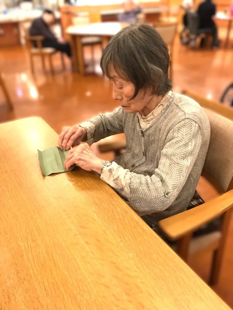 能力に合わせて、スタッフが提案した折り紙を折ってくれる方もいらっしゃいます。