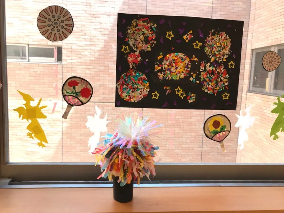 4階のお客様たちは発想力がずば抜けていらっしゃるため、機能訓練指導員が材料をお渡しし、 「これで夏っぽいものをつくってみてください」とだけお伝えします。