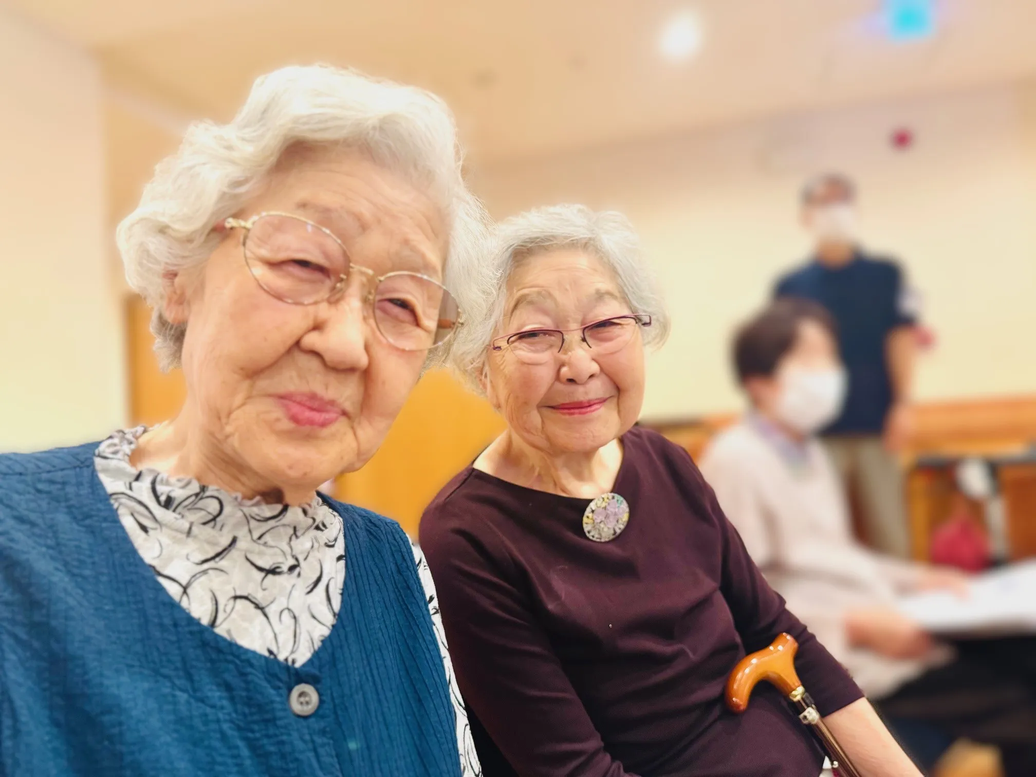 『さざんかの宿』では「昔よく歌ったわね」と隣同士でうなずきあったり、『月の砂漠』では4番まである長い歌詞をすらすらと歌い切り、「懐かしいわね」「学校で歌ったわ」と思い出話に花が咲きます。