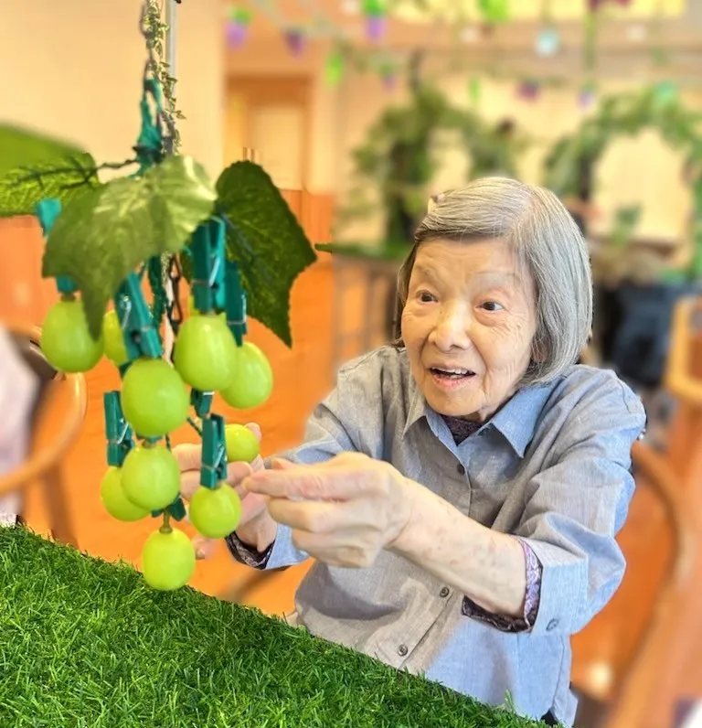 ツクイ・サンシャイン町田西館 イベント委員会が総力をあげて、1階食堂に ぶどう農園をつくりあげました。