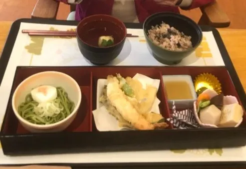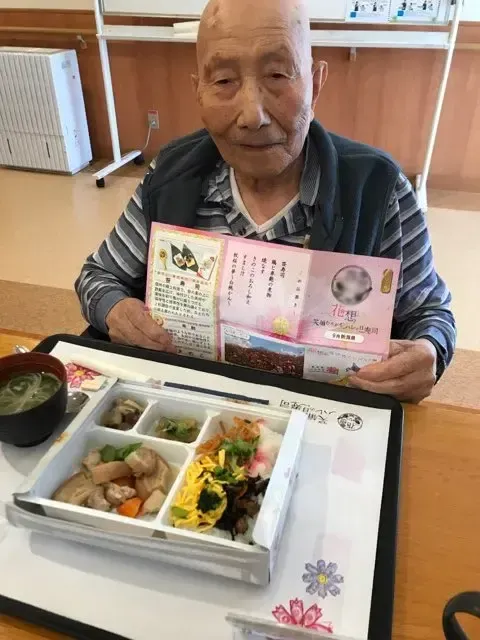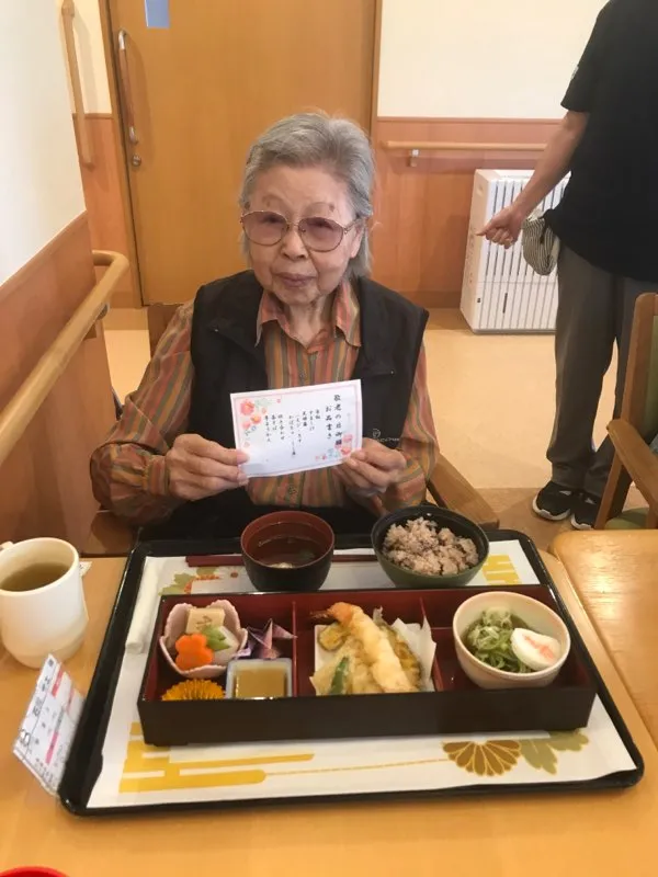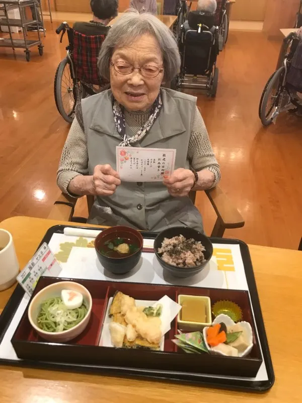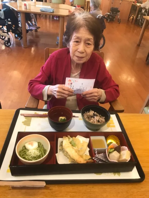 天ぷらに茶そばと、赤飯とボリュームも満点。皆様いつまでも元気に過ごしてほしいという願いを込めてのお祝い御前です!