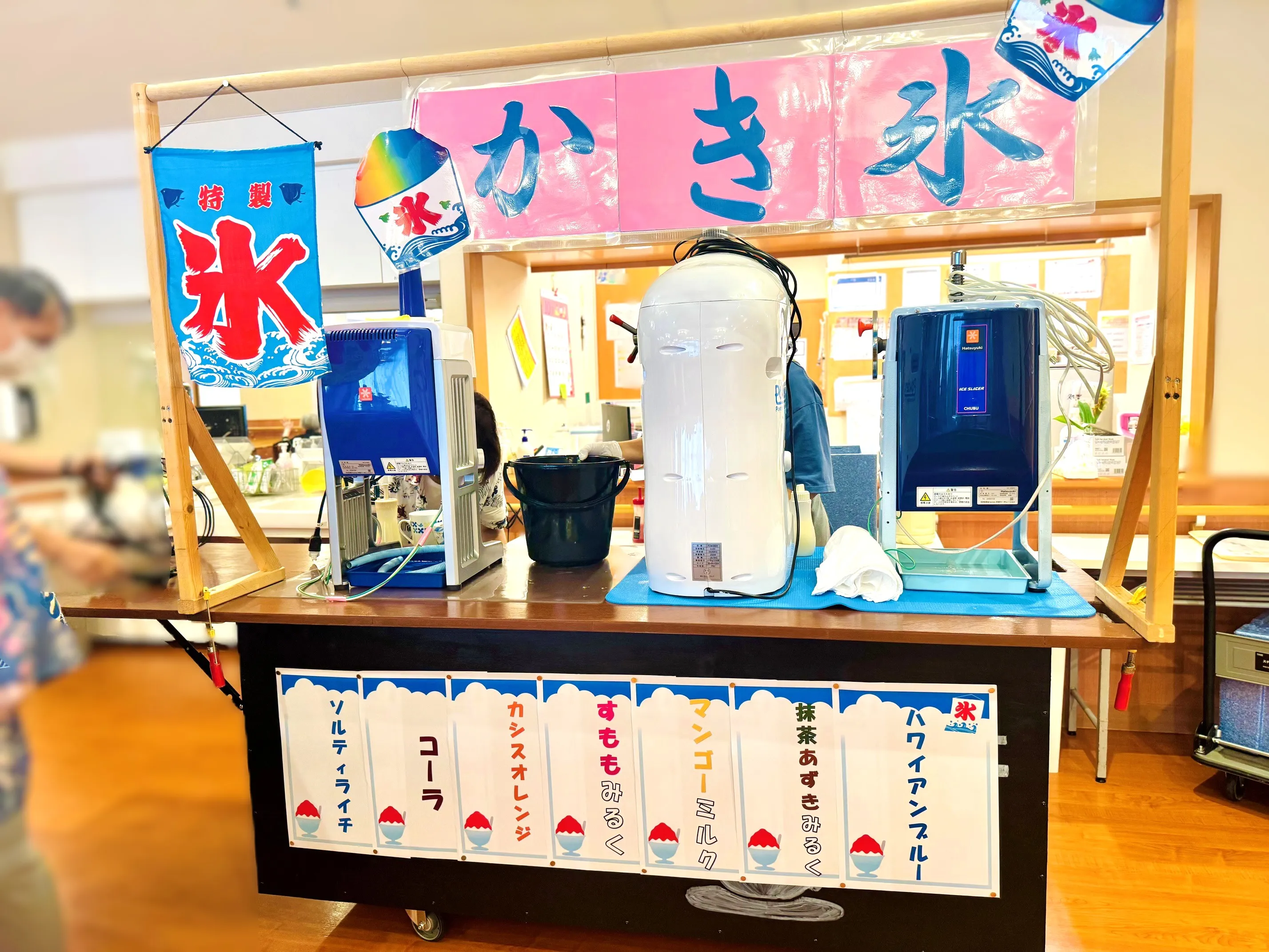 かき氷は、すももみるくやコーラ、マンゴーみるく、カシスオレンジなど 様々な種類をご用意しました。