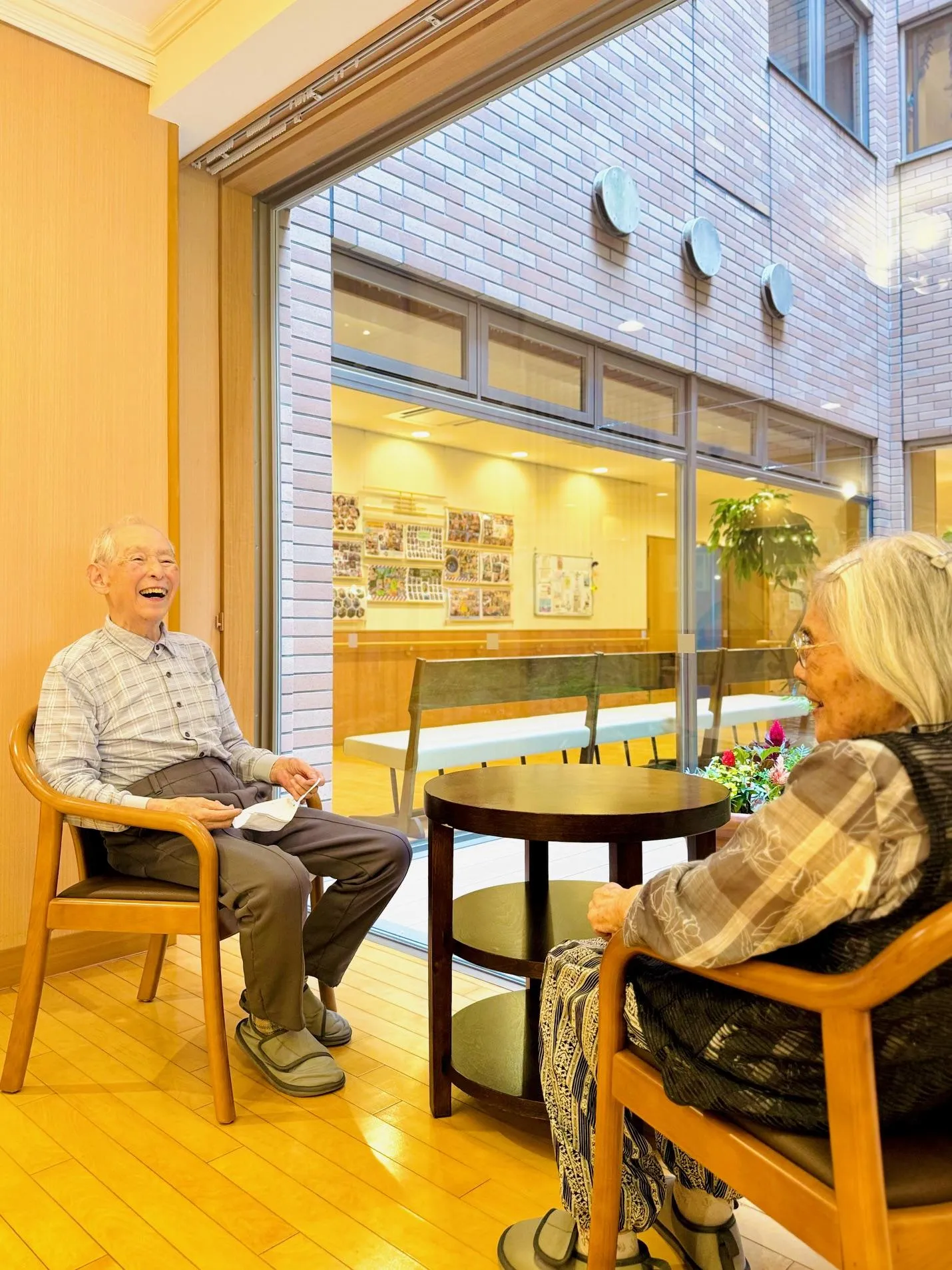 1階などでたまたま会うと、「偶然だなぁ!」と一緒に1階のベンチに座って、庭を眺められたり。