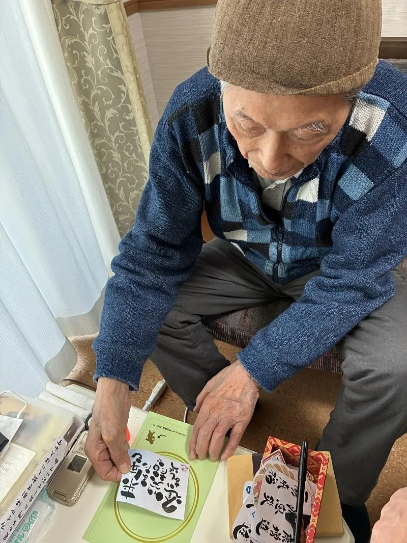 皆様たくさんのシートから思い思いのメッセージやお正月らしい絵を見つけ出し、楽しそうに張り付けておられました。