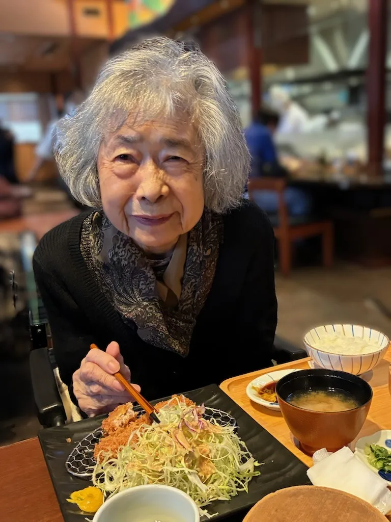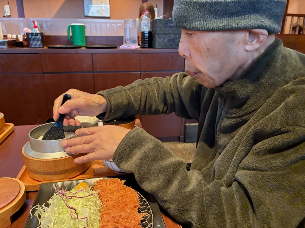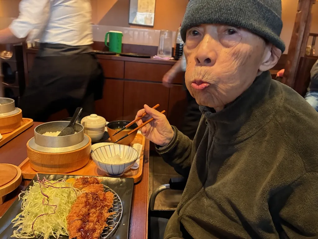 秋ごろより、機能訓練室にも顔を出してくださるようになり、希望を伺うと『前に、機能訓練のスタッフとケアマネジャーと外でご飯食べたのが、楽しかったな』と話され、今食べたいものをうかがうと『かつ丼が食べたい』とのこと!