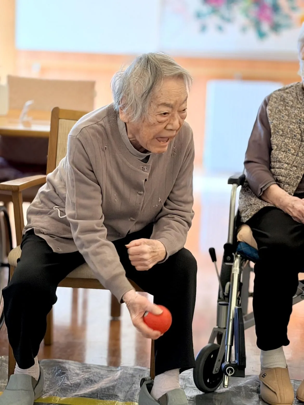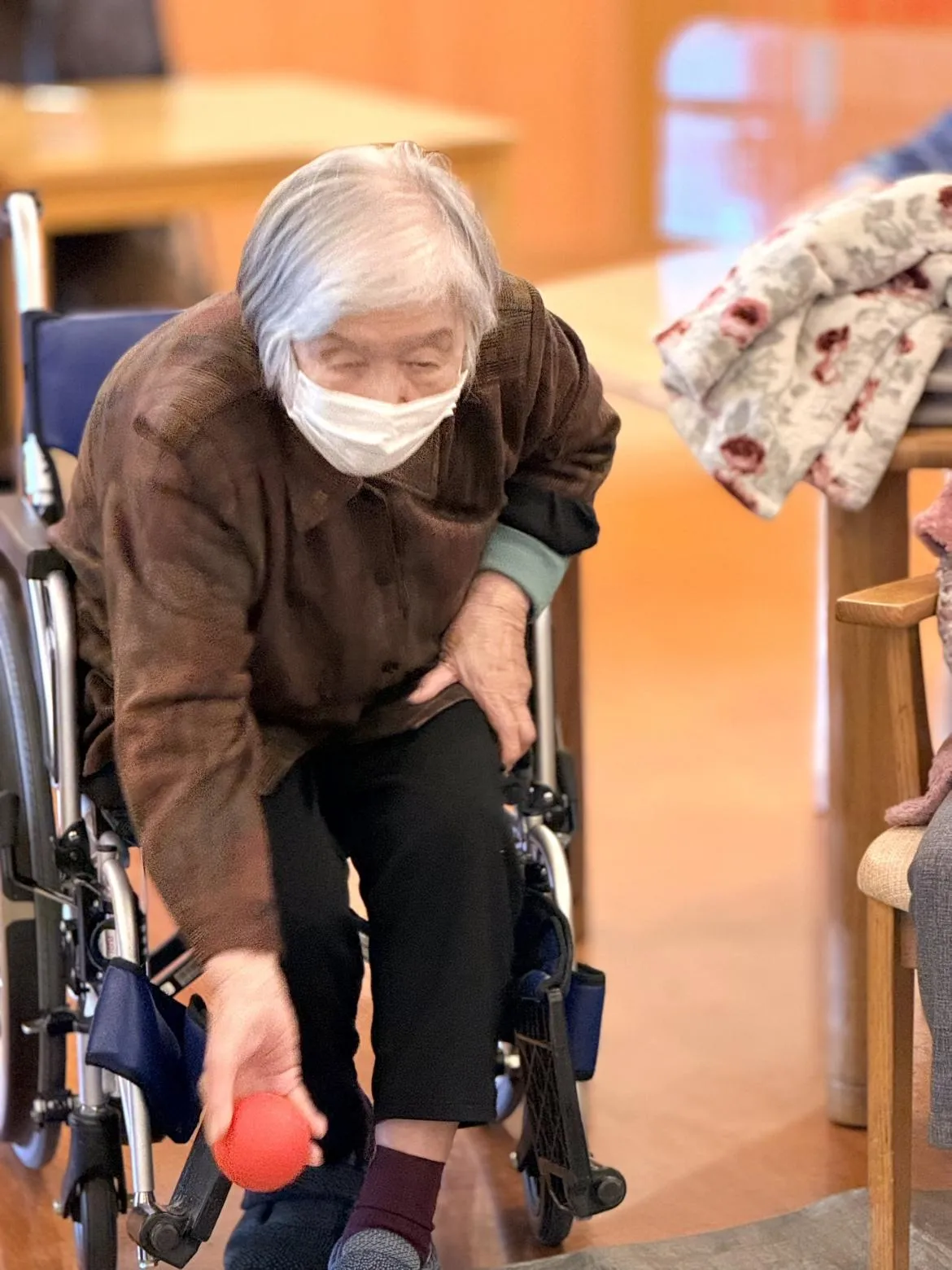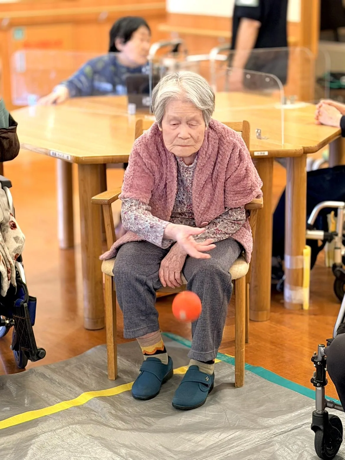 体を動かしながら無理なく参加できるボッチャ、皆さまにも大人気のレクリエーションです。