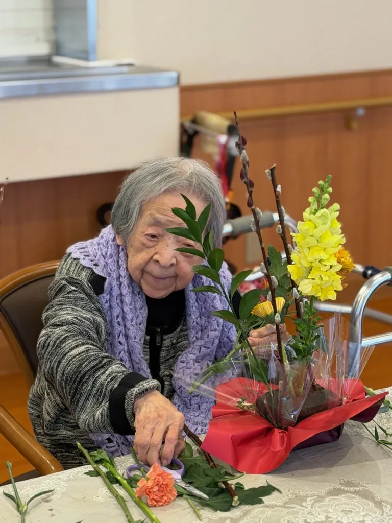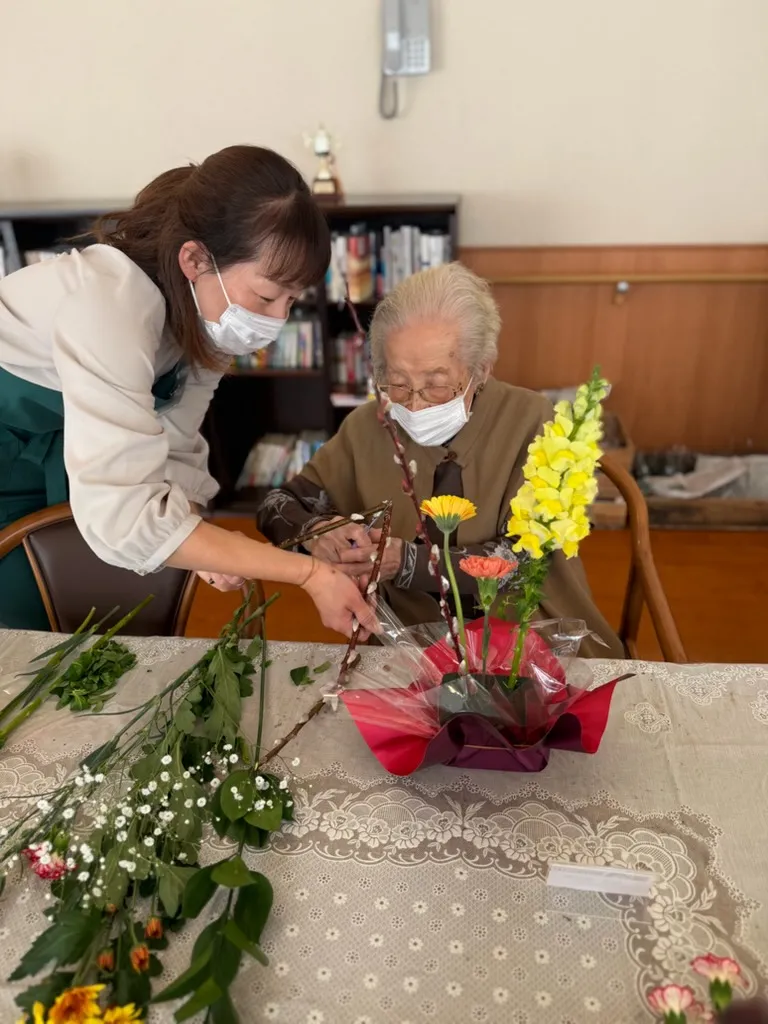お花を活けている時、「きれいだね」「お正月らしいね」といった声も聞かれ、