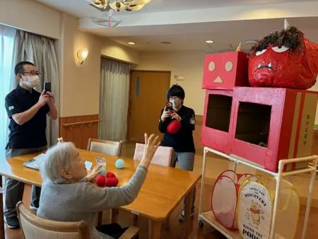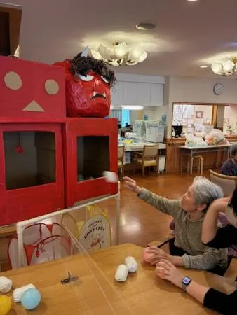 今回は豆の代わりにボールを持って頂き、鬼役はもちろんスタッフ!