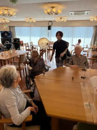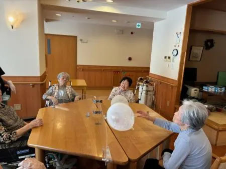 風船がふわりと宙に浮かぶたびに「それっ!」「いったぞ!」と声が飛び交い、皆様で協力してラリーを続けることが出来ました。