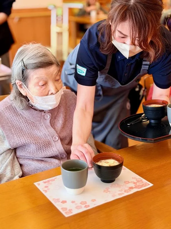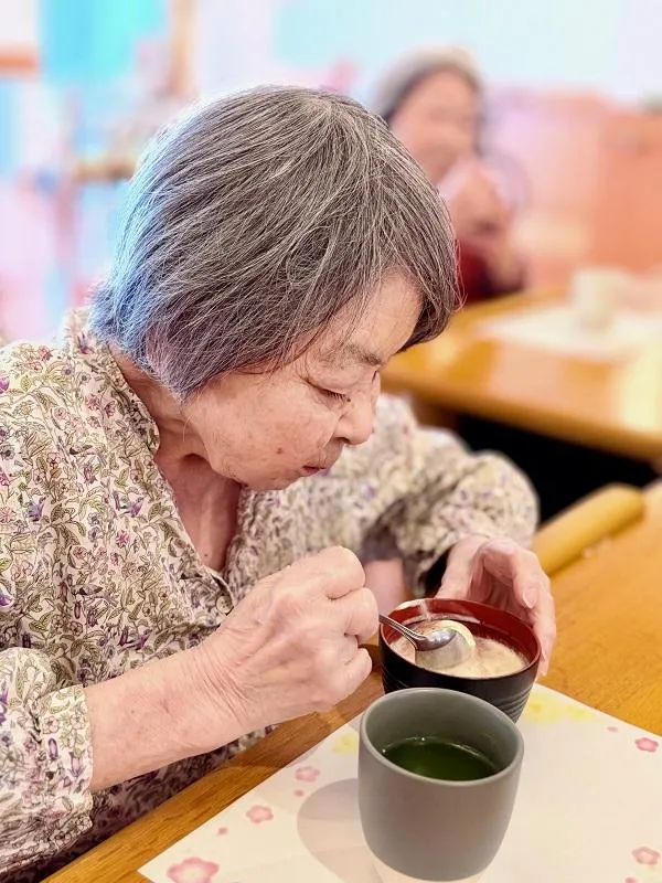 あたたかいぜんざいと、ひんやりしたアイスの組み合わせは皆様にも好評で、「おいしいね」と笑顔で召し上がる様子が見られました。
