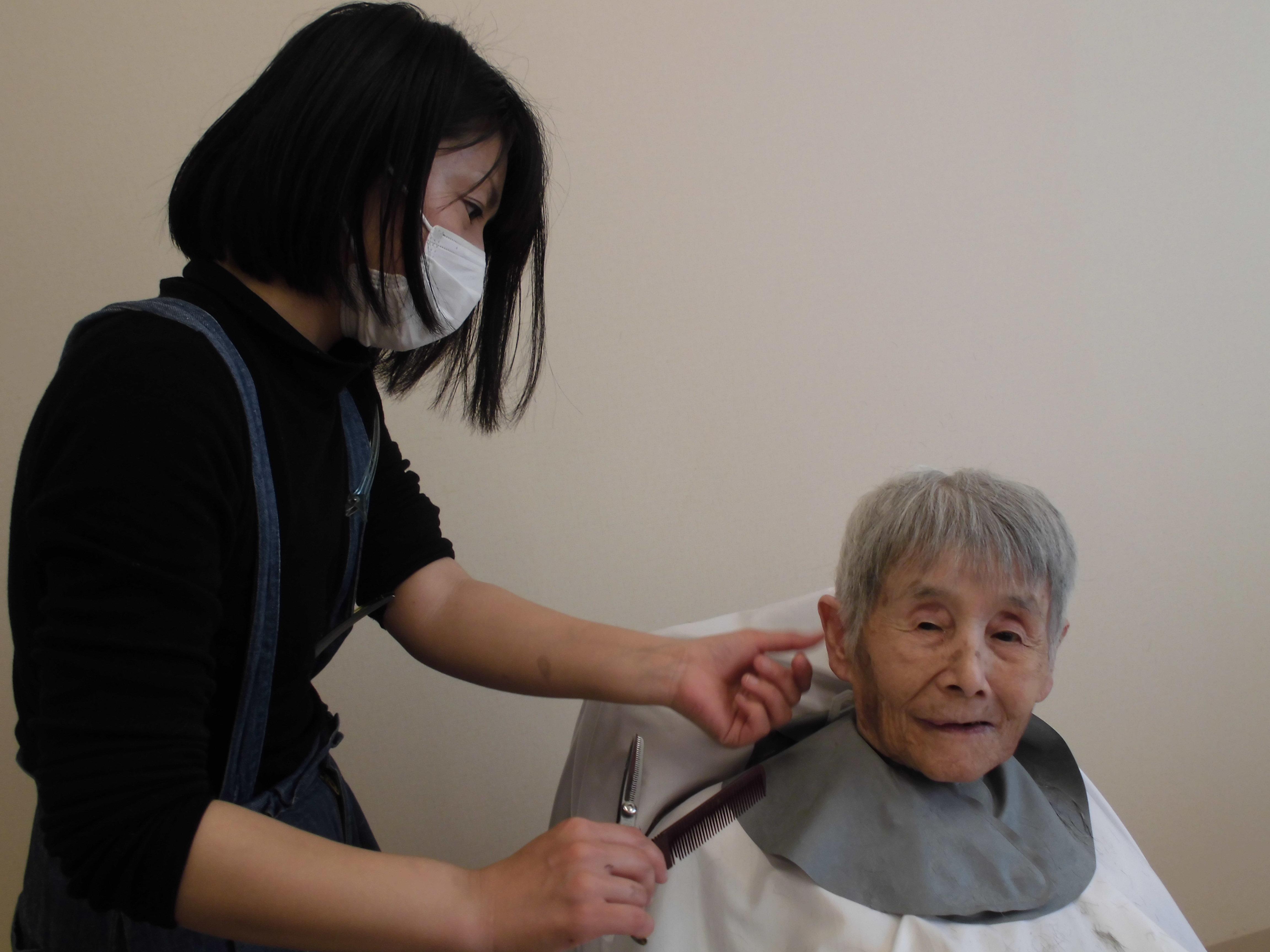 ツクイ・サンシャイン町田西館では、訪問美容員さんが定期的に来館し、髪を切って頂いております。