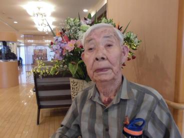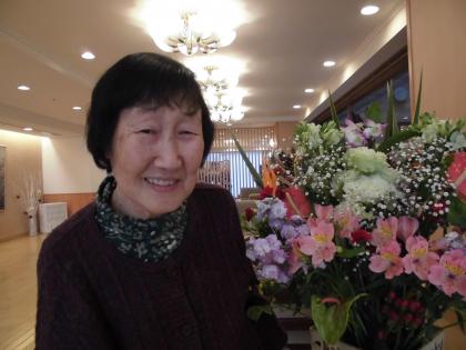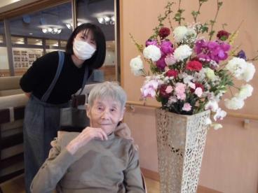 カット後にロビーの花と一緒に写真を撮らせて頂きました。