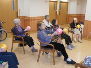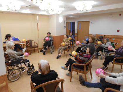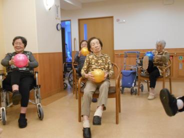 ボールや棒を使って、足や腕の機能訓練を行いました。