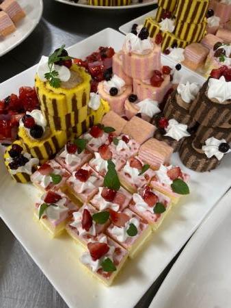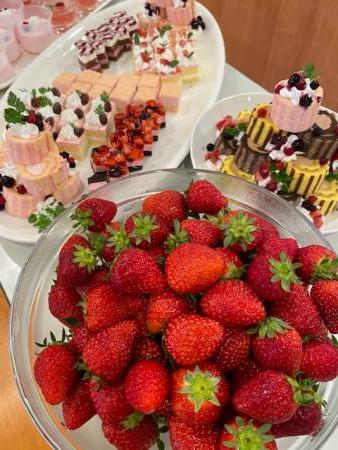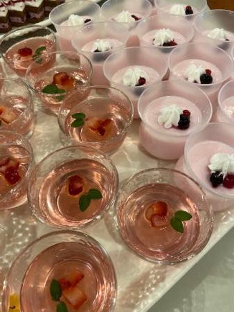 厨房職員が、ゼリーやケーキ、ババロアなども素敵に盛り付けしてくれました。