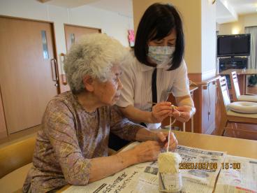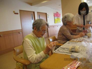 先日、麻ひもを使ってのかぎ針編みを行いました。