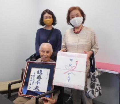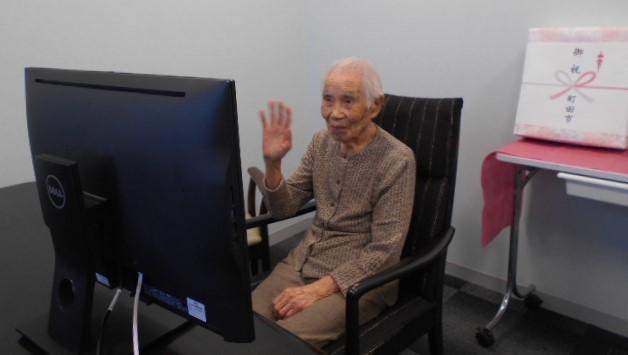 町田市の最高齢者として、ご入居されている108歳のお客様が、町田市市長よりリモートではございましたが、長寿のお祝いをいただきました。