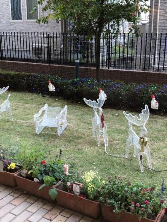 お客様が一番行き来をするエレベーター前の中庭を、まずは飾り付けました!
