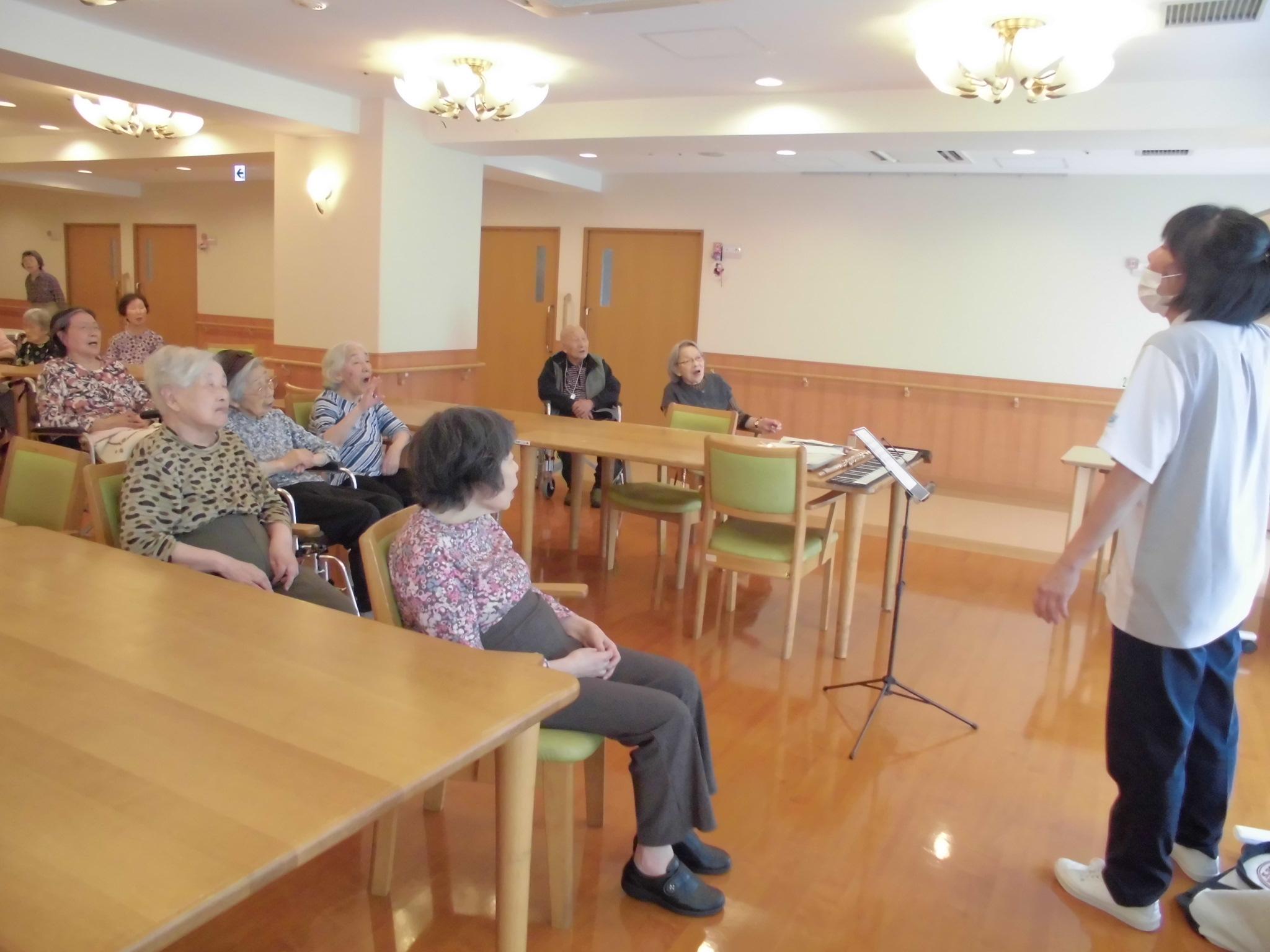 歌のレクリエーションは、どのフロアでも人気のレクリエーションです!