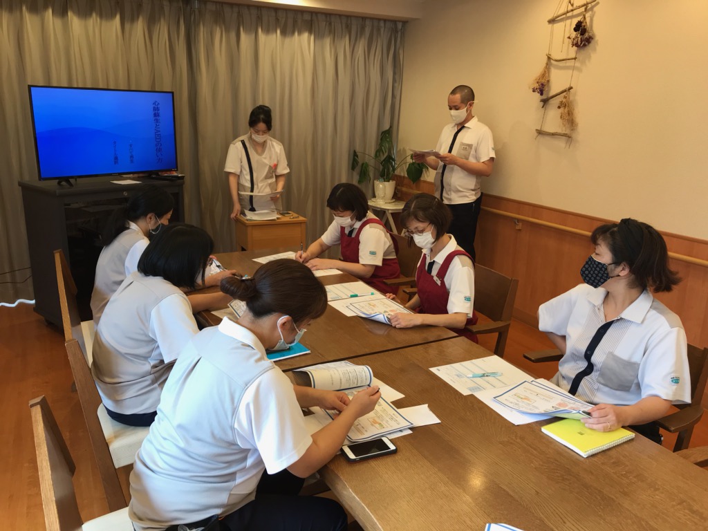 ツクイ・サンシャイン町田西館では、定期的に緊急時の対応の研修を行っています。