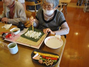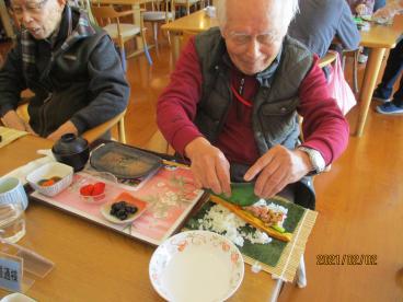 平べったくなってしまった方、きれいに巻けた方、食べる時に崩れてしまった方…色々な恵方巻が完成しました!