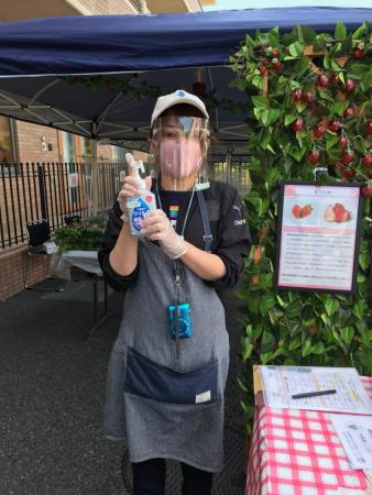 新鮮ないちごを嬉しそうにほおばる方、練乳をつけて味変されて楽しまれる方、「フルーツは別腹よ」と15粒めしあがる方も。