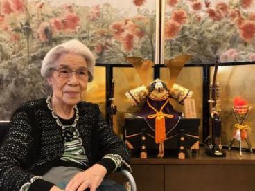 お風呂上りに、五月人形の前で素敵な笑顔をパシャリ!
