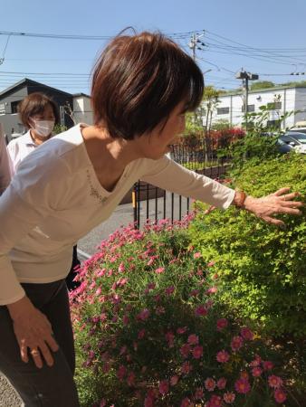 暖かい陽だまりの午後に、機能訓練の屋外歩行の訓練を兼ねて、施設内のお花の鑑賞をされている所をパシャリ!