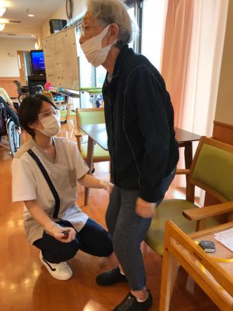 ツクイ・サンシャイン町田西館の縁の下の力持ち、機能訓練士のチームがお客様の体力測定を行っています。