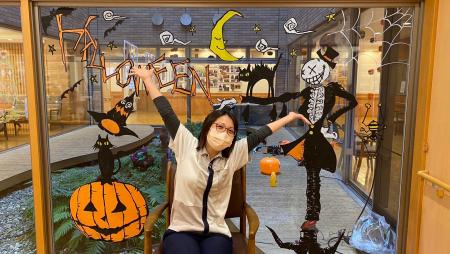 ツクイ・サンシャイン町田西館で、イベントのたびにイラストを描いてくれている職員に、ハロウィンのイラストも依頼をしていました。