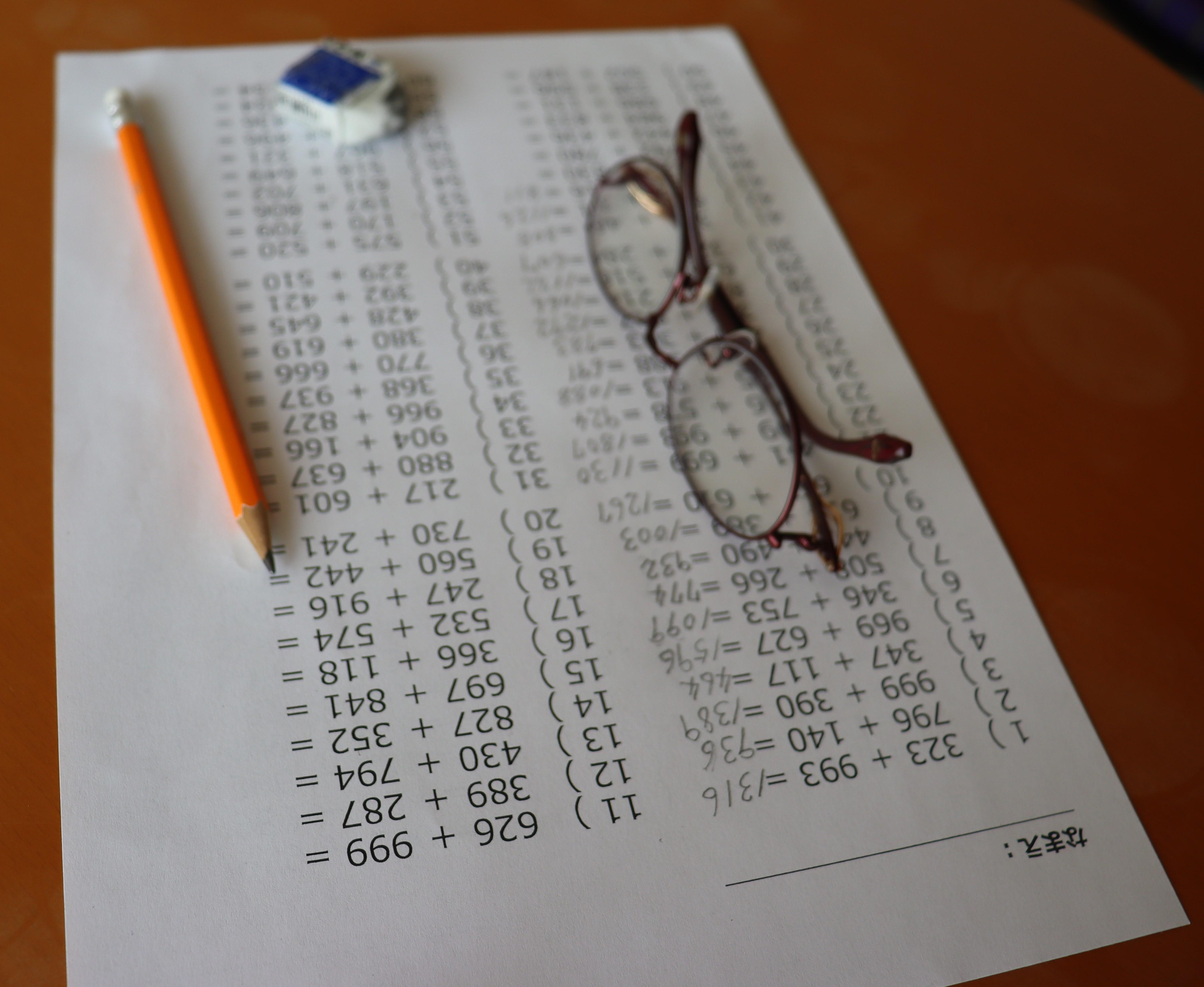 「前は2桁で、今は3桁の足し算引き算をしよるんよ。暗算もできるようになった。次は4桁に挑戦してみようかな」と脳トレを楽しまれています。
