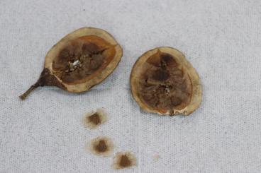 鞘の中には、1.5㎝ほどのスイカの種のまわりに魚の鱗のような物(やわらかい)がついています。